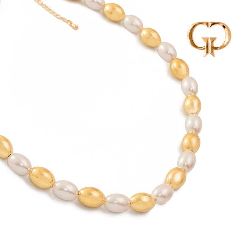 COLLAR GRANDE PERLAS Y BOLAS OVALADAS
