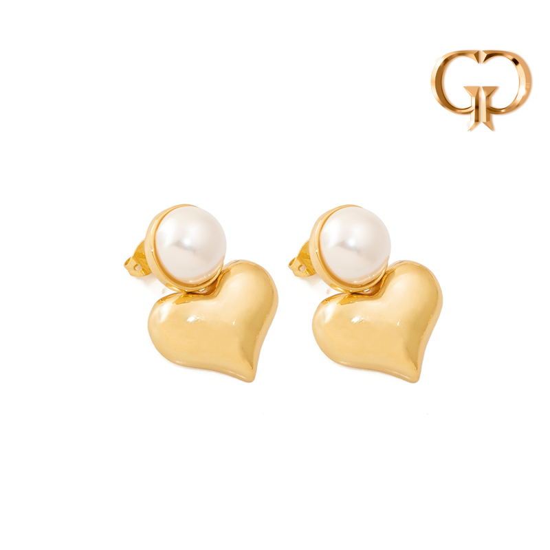 ARETE PERLA Y CORAZON BOMBACHO, RODIO