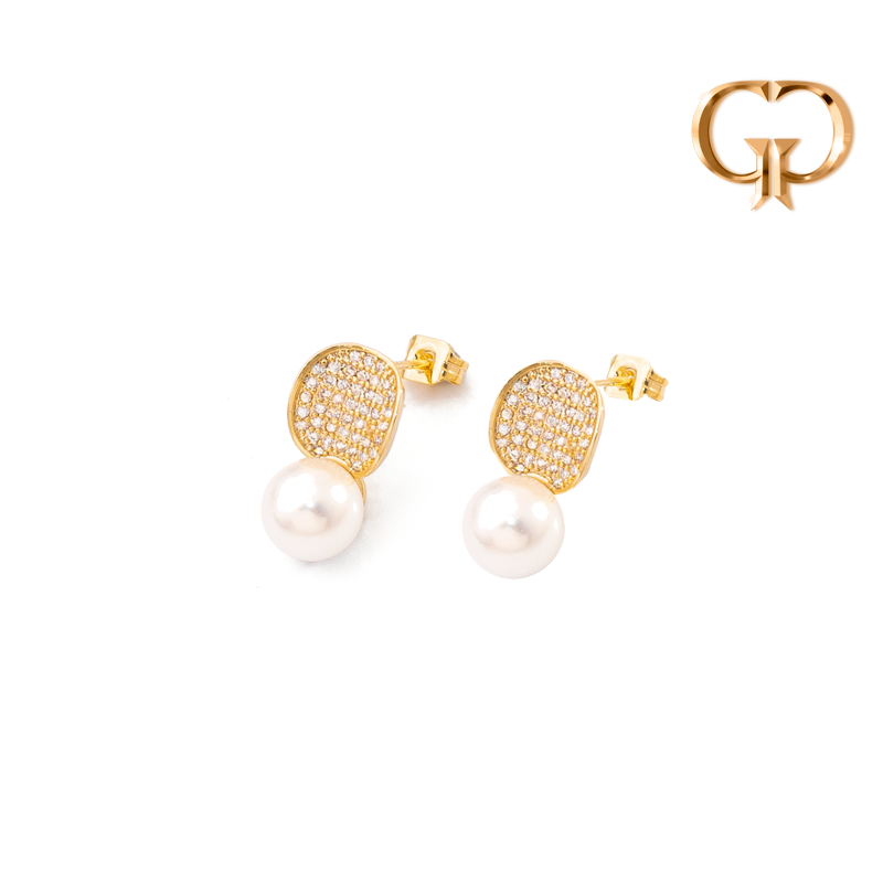 ARETE FIGURA EN MICROZIRCONES Y PERLA COVER GOLD