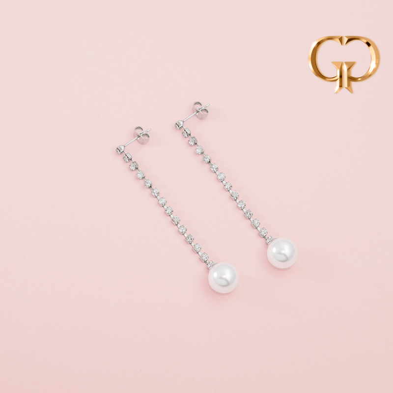 ARETE LARGO STRASS DE ZIRCONES Y PERLA, RODIO