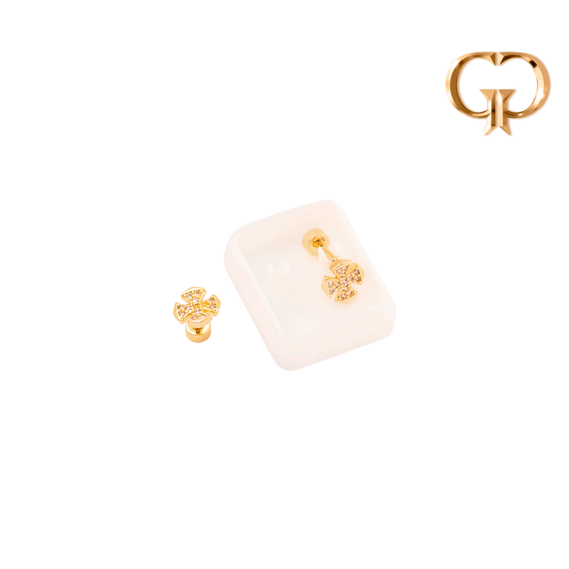 Z3578 - TOPITO CIERRE DE SEGURIDAD FLOR EN MICROZIRCONES, COVER GOLD