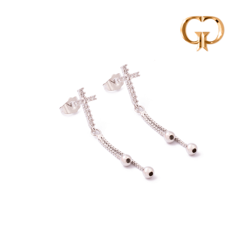 ARETE LARGO CRUZ EN MICROZIRCONES COVER GOLD